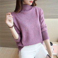 依悦秋冬女装韩版宽松半高领棒针粗毛衣厚保暖毛衣套头针织衫