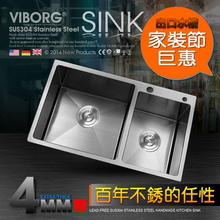 香港域堡4mm厚304不锈钢欧洲手工水槽厨房洗菜盆子母双槽厨房星盆