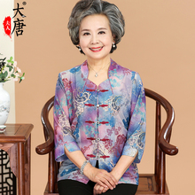 大唐夫人衣服衬衣中老年人女装奶奶装夏装短袖妈妈装上衣D-1728