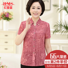 红曼裳中老年春装女装衬衫50-60岁妈妈装半袖中年人夏装中袖上衣