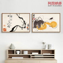 新中式客厅装饰画 现代书房卧室床头挂画齐白石水墨花卉国画壁画