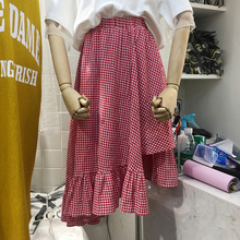 韩国ulzzang2017春装新款韩范休闲不规则荷叶边高腰格子半身裙女