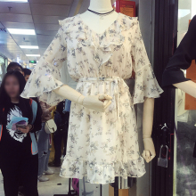 韩国ulzzang2017夏装新款韩范休闲喇叭袖碎花荷叶边雪纺连衣裙女