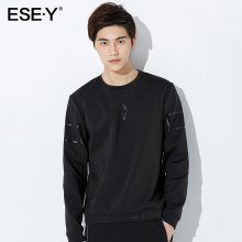 逸阳男装春季新款上衣修身型圆领套头长袖太空棉印花卫衣男0006S