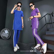2017夏季新款运动服套装女韩版休闲纯棉圆领短袖长裤修身两件套潮