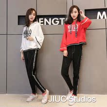 欧洲站2017春夏新款韩版休闲运动套装女宽松卫衣小脚裤显瘦两件套