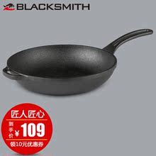 本库橡木柄铸铁炒锅 无涂层加厚铁锅铸铁锅不粘锅 31cm手工生铁锅