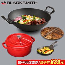 本库2代铸铁炒锅36cm+珐琅铸铁汤锅24cm 加厚铸铁锅套装