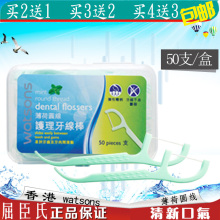 包邮 买2送1 香港进口屈臣氏薄荷圆线牙线牙线棒牙签线50支/盒