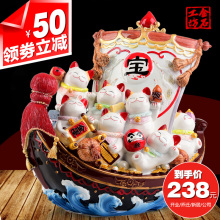 正品金石工坊大号码宝船招财猫摆件公司店铺家居开业开张乔迁礼物