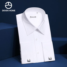 谛梵男装法式袖扣衬衫男长袖韩版修身商务斜纹春季白衬衣结婚礼服