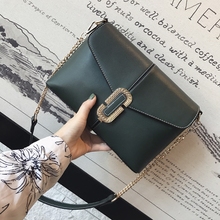 女包2017韩版新款锁扣链条包小方包单肩斜挎小包车缝线复古信封包