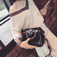 2017欧美新款休闲百搭手提包复古马鞍包链条圆环单肩斜挎包女包包
