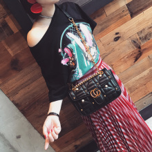 菱格链条单肩斜挎小包包2017韩版车缝线秀花包圆环锁扣复古女包潮