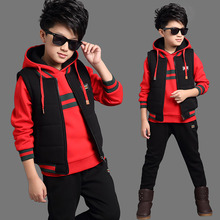 加厚中大儿童童装男童秋冬装运动三件套套装2016新款10男孩15岁潮