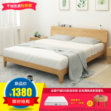 北欧实木床1.8米双人床主卧欧式全实木床现代简约成人1.5米单人床