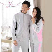 CY冬季法兰绒睡衣套装灰色男女外穿运动家居服套装长袖珊瑚绒睡衣