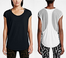 美版 女子健身运动跑步瑜伽罩衫 宽松显瘦网纱露背性感短袖T恤