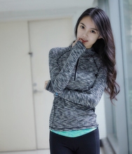 段染立领 女款健身服上衣瑜伽长袖运动紧身拉链开衫夹克 外套T恤