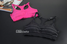 高强度无钢圈速干条纹运动文胸罩杯胸垫健身内衣跳操背心