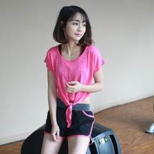 健身跑步服短袖T恤瑜伽上衣速干修身衣服女高弹运动跳操衣服春夏