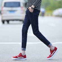 青少年韩版修身弹力九分裤春季男士牛仔裤男小脚休闲裤9分裤子潮