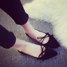夏季绒布平底浅口透气单鞋女尖头蝴蝶结显瘦豆豆鞋百搭休闲淑女鞋