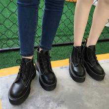 秋冬原宿风日系复古厚底圆头系带机车马丁靴平底女短靴高帮小皮鞋