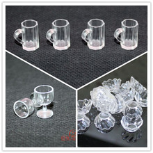 1:12娃娃屋模型食玩餐厅配件 高脚杯啤酒杯果盘四个一套61004