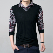 时尚秋季新款男士衬衫领长袖t恤 潮男薄款衣服加大码打底针织衫男