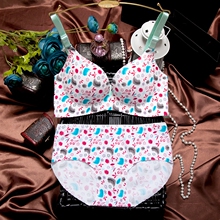 性感日系一片式无痕内衣文胸套装小胸甜美聚拢薄厚款印花深V文胸