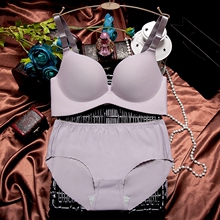 一片无痕隐形钢圈性感厚薄聚拢文胸调整型内衣套装少女胸罩舒适