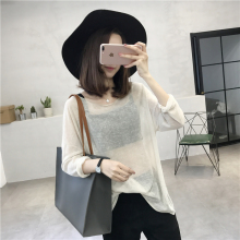 包邮超薄款大圆领长袖针织衫T恤 宽松套头透视防晒空调衫女打底衫