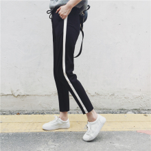 2016秋冬款女装白边抽绳加绒加厚松紧腰哈伦裤运动裤显瘦小脚裤