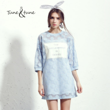 tune tune 春装新款浪漫潮流字母宽松波点蕾丝七分袖连衣裙女
