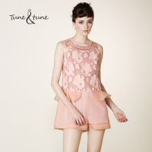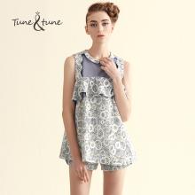 tune tune夏装蕾丝荷叶边欧根纱短裤无袖中腰连体裤女