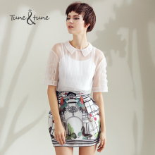 tune tune夏装新款短袖条纹印花两件套欧根纱A字裙连衣裙女