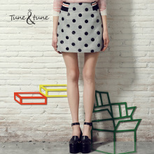 tune tune春装新款波点图案撞色腰头棒球款A字裙短裙女半身裙