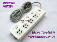 3米接线板新国标三芯线 独立开关 电源插座排插4位 安全插板包邮