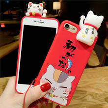 卡通招财猫iPhone6plus立体趴趴手机壳苹果7plus可爱带挂绳软壳