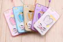 松羚 透明iphone4代兔耳朵支架手机壳苹果4s挂绳兔子i4硅胶保护套