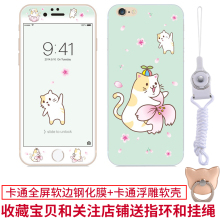 松羚苹果6s卡通手机壳软硅胶iPhone6保护套送一体全屏钢化膜潮女