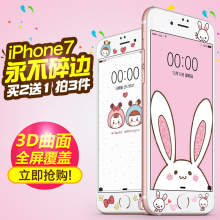 iphone7钢化膜7plus可爱卡通彩膜全屏全覆盖手机保护贴膜防爆潮女