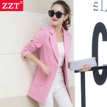 小西装女2017春装新品韩版修身长袖西服女中长款大码休闲西服外套