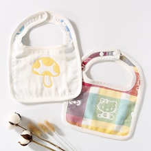 日本婴儿蘑菇围嘴宝宝纯棉纱布口水巾按扣围兜超吸水6层全棉纱布