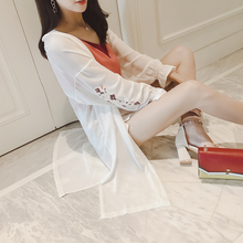 绣花防晒衣夏季新款2017韩版女装AB3-2中长款雪纺防晒服开衫外套