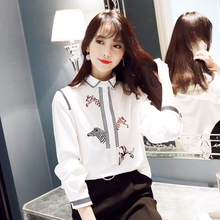 雪纺衬衫春季新款2017韩版BF5-3百搭时尚POLO领刺绣白长袖女衬衣