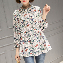 碎花雪纺衫长袖女2017新款春韩版百搭印花打底衫柔美雪纺上衣薄款