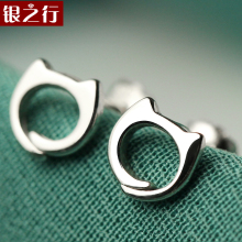 925纯银小耳钉韩版女时尚气质可爱韩国风甜美猫咪耳环饰品