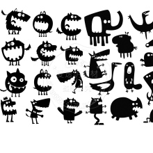 【277】EPS矢量黑白可爱卡通简笔画动物怪兽剪影矢量设计素材